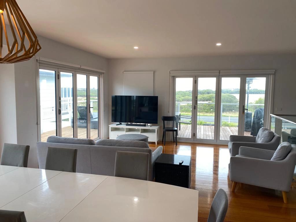 Located just a 5min walk from Surf Beach, our 4 bedroom home has ample parking for 3 cars and a view of the bay
